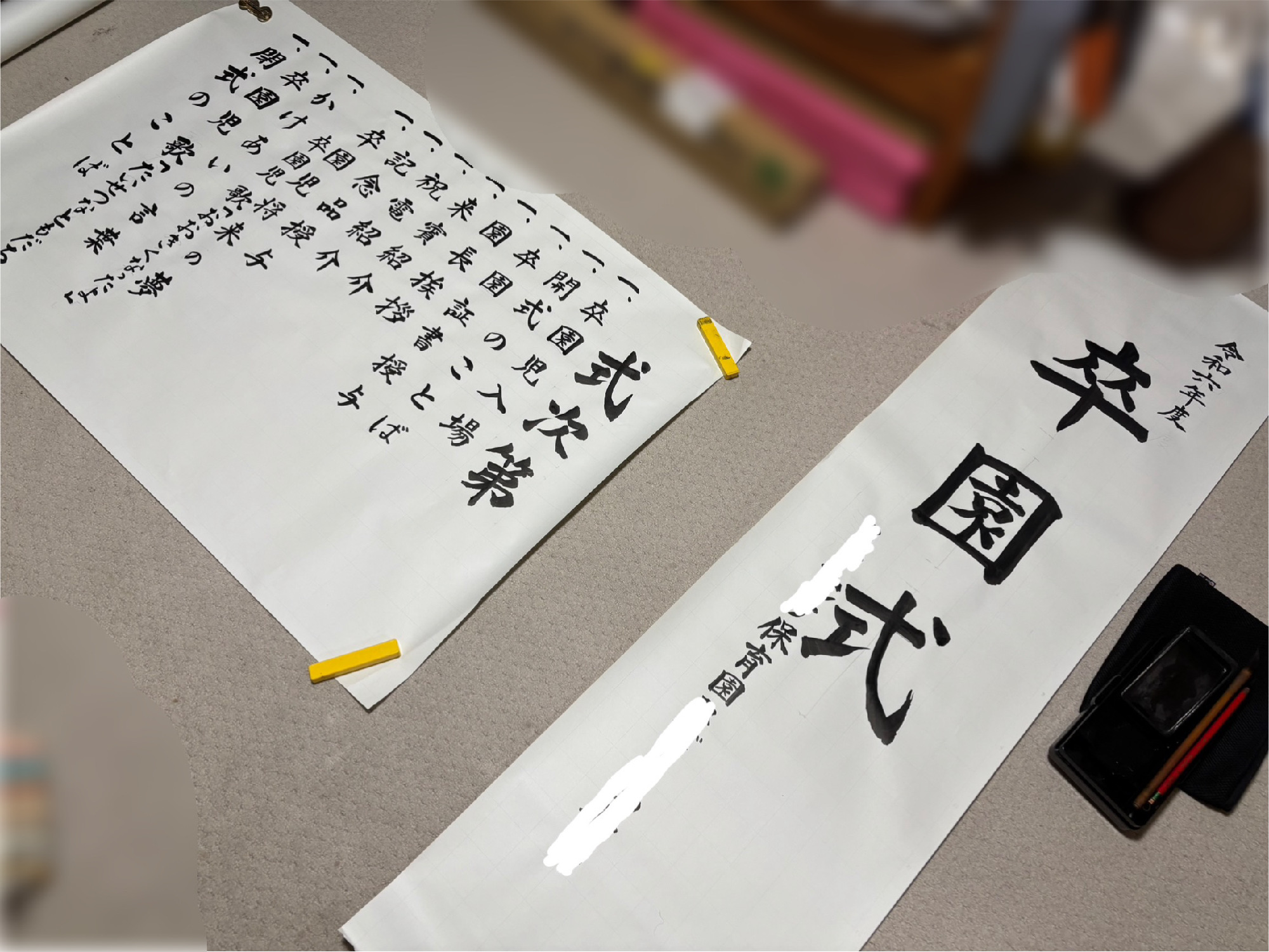 卒業証書の筆耕や卒業式の看板、式次第のご依頼をいただき、