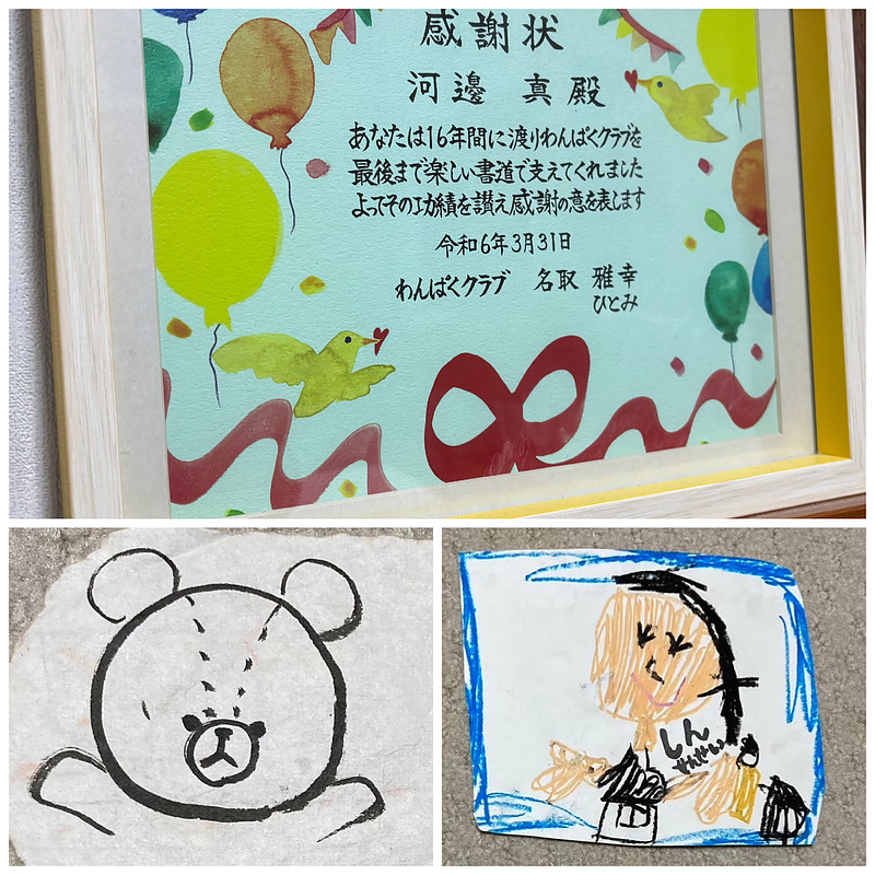 16年間続けてきた「わんぱくクラブの書道教室」に対する感謝状をいただきました。