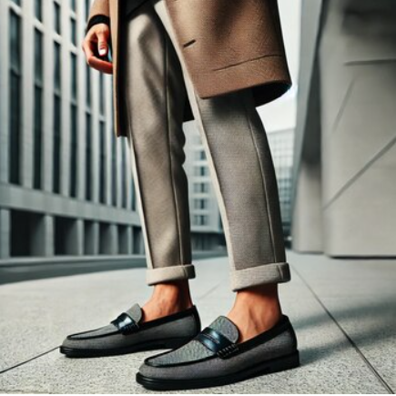 このようなパンツは、足首まわりをすっきり見せてくれるので、ローファーの存在感を引き立てることができます。