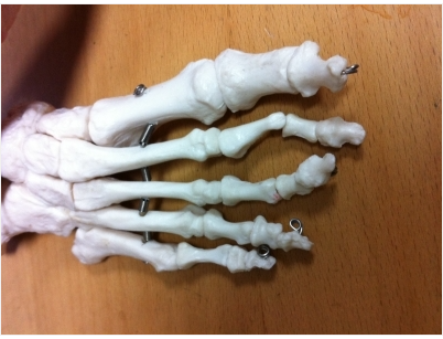開張足は、足の横アーチが崩れてしまっている状態を指します。写真のように、全ての指が地面に密着してべったりとついている足の状態です。本来あるべき足の横アーチが失われ、「開いて張った足」になっています。