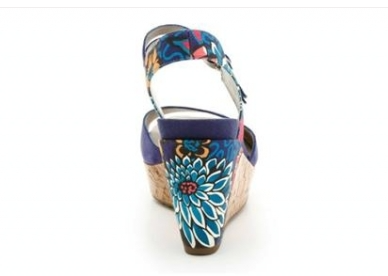 セントボトルはコルクウェッジに、リバティプリントのフェミニンなバックルストラップを組み合わせた魅力的なデザインです。万華鏡のような色彩とセクシーなオープントゥで、注目を集めること間違いありません。