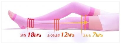 足首(18hPa)→ふくらはぎ(12hPa)→太もも(7hPa)と、圧力値を計算された設計で