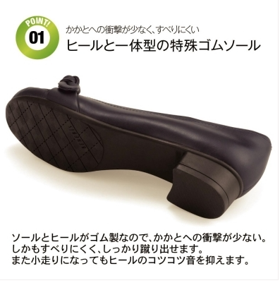 衝撃吸収・滑りにくい・ヒール音も静か。歩くたびに実感できます。