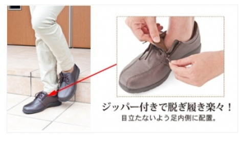 靴ひもでホールド感を調整したら、あとはジッパーでワンタッチ。毎日の着脱が驚くほどラクになります。