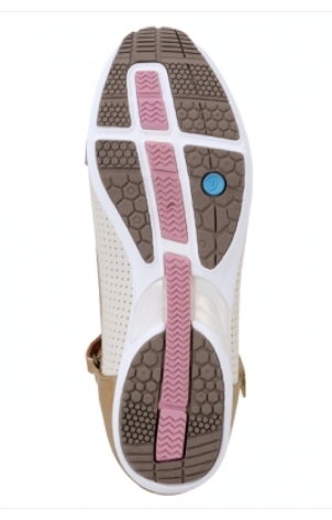 最大の特徴は、靴底に搭載された「バランスコントロールバー」。かかとからつま先にかけて中央を貫くこのバーが、歩行時の体幹バランスをサポートします。つま先が自然と前に出やすくなり、着地から蹴り出しまでの動作がスムーズに。さらに、体幹の前傾角度が改善され、背筋が伸びやすくなる効果も期待できます。