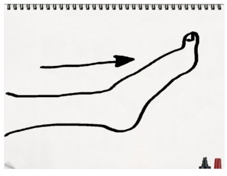 2.つま先を意識して引き延ばし、足の甲を伸ばすようにします(長趾屈筋、長母趾屈筋を使用)。