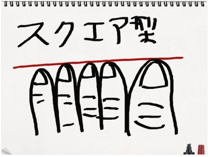 日本人に最も多いタイプで、親指が一番長く、他の指がなだらかに短くなっていく形です。