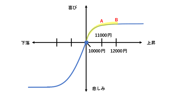その後10,000円から1万1000円になったときの喜びはAのように上昇します。