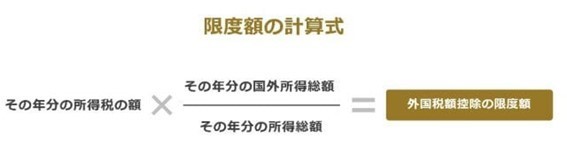 国際的な二重課税を排除するために、外国での源泉徴収がある場合、外国で納付した税額を一定の限度額の中で、国内の所得税や住民税から差引く制度です。下記の算式により計算した控除額を限度として控除できます。控除しきれなかった分は翌年以降3年間の繰越しが認められています。