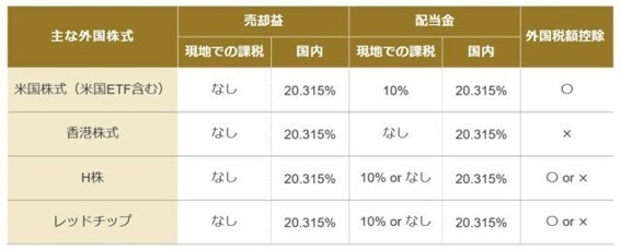 ※H株とレッドチップは、現地での配当課税がない場合は、外国税額控除もありません