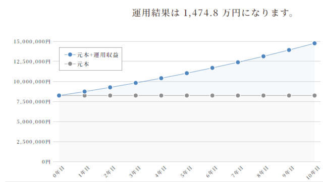 元の823.5万円に対して、約650万円の収益が出ており、合計すると1474.8万円となっています。