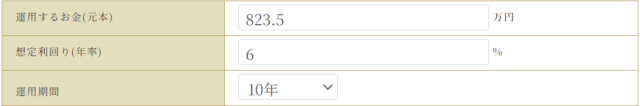 次に60歳まで積立投資を行った運用資金823.5万円を70歳まで10年間追加投資せずに運用を続けた場合のシミュレーションを見てみましょう。