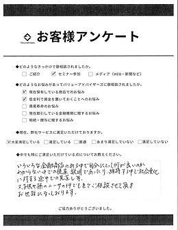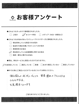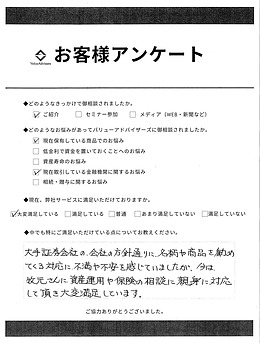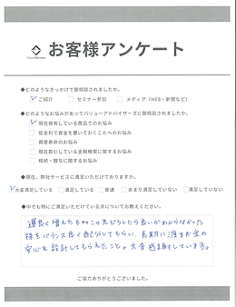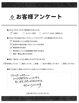 個人個人の状況に応じた資産運用のアドバイスをいただける点大変満足しています
