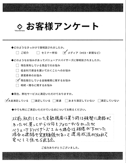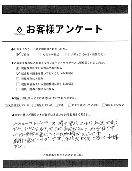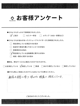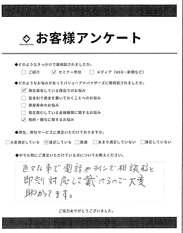 以前、取引していた金融機関は買う時は頻繁に連絡があったが買ってからは何もフォローがなかったがバリューアドバイザーズさんの場合は相場が下がった場合の連絡や定期面談があって運用状況が知れて安心して任せられる点