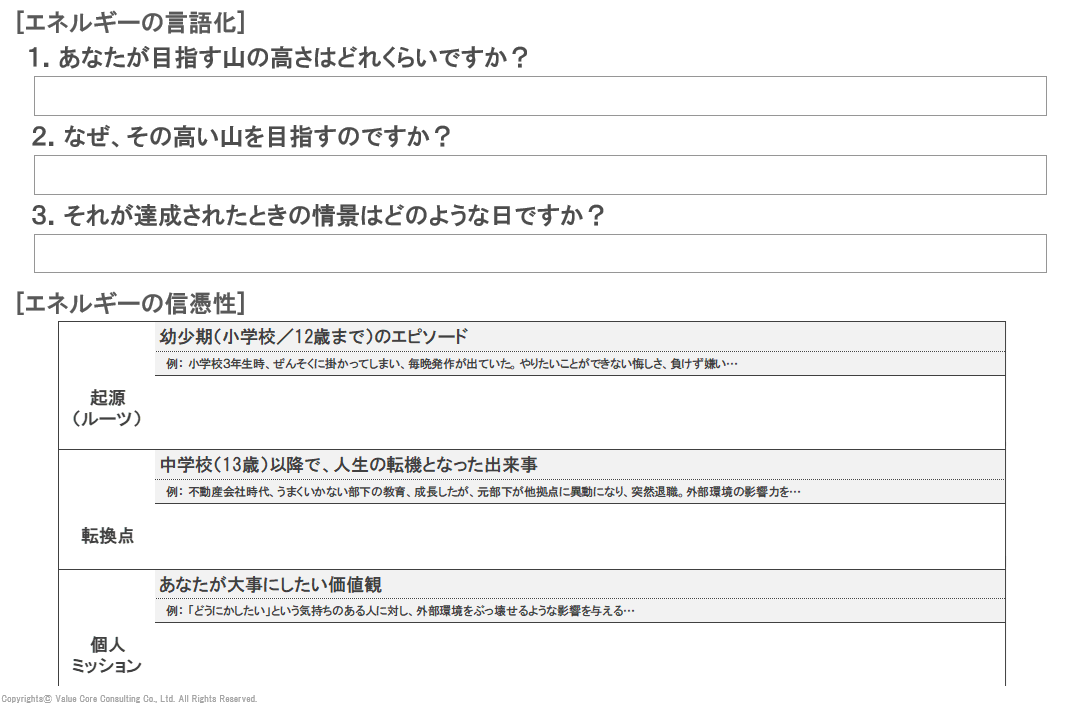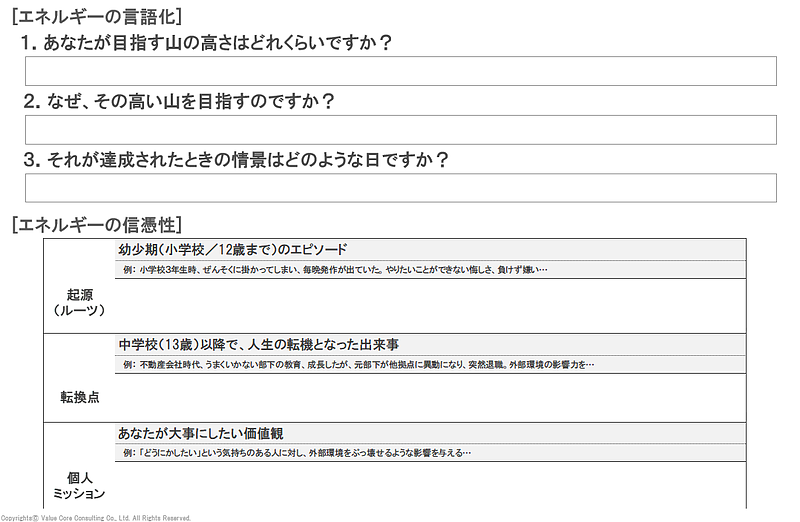 このような言語化がされることで、自らのエネルギーを言語化でき、自らの価値観や目的意識を鮮明に持った状態でチームを動かすことができます。