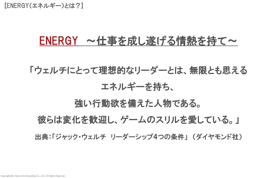 ただし、プレイヤー層や中堅社員、これからリーダーを目指す方々にとっても、“エネルギーの言語化”は非常に有効です。