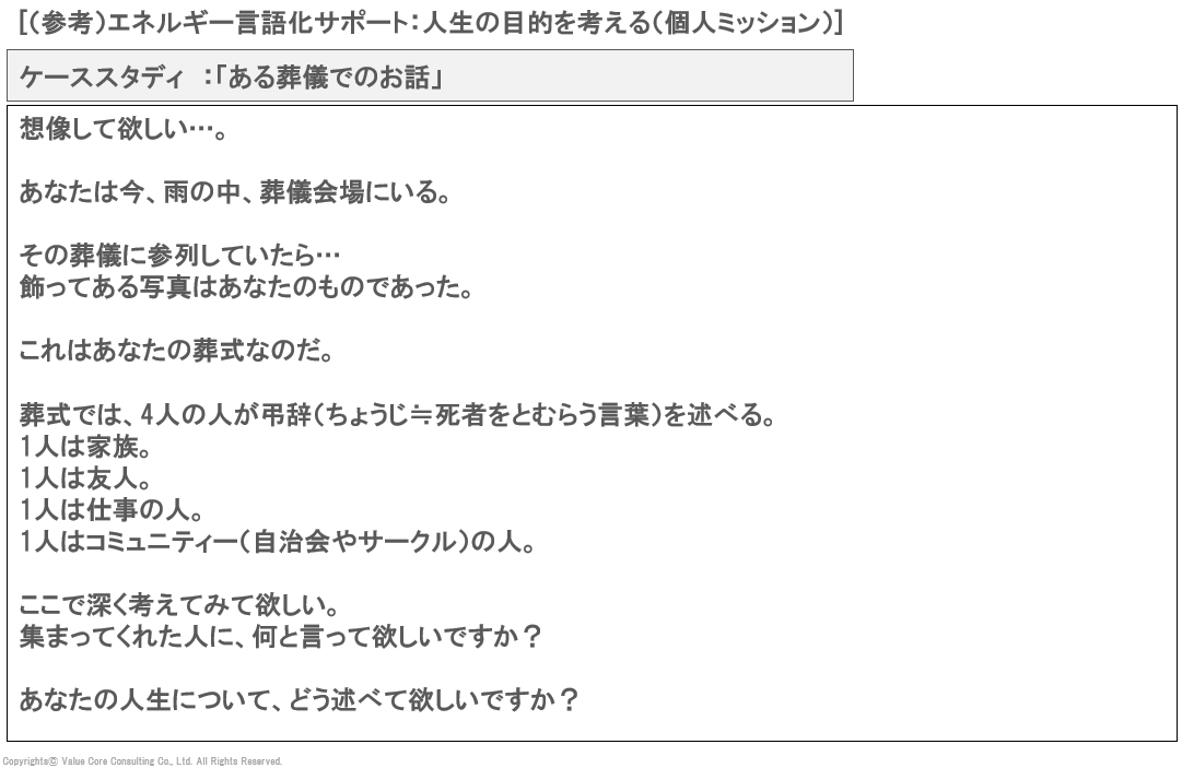 (参考)エネルギー言語化サポート:人生の目的を考える(個人ミッション)
