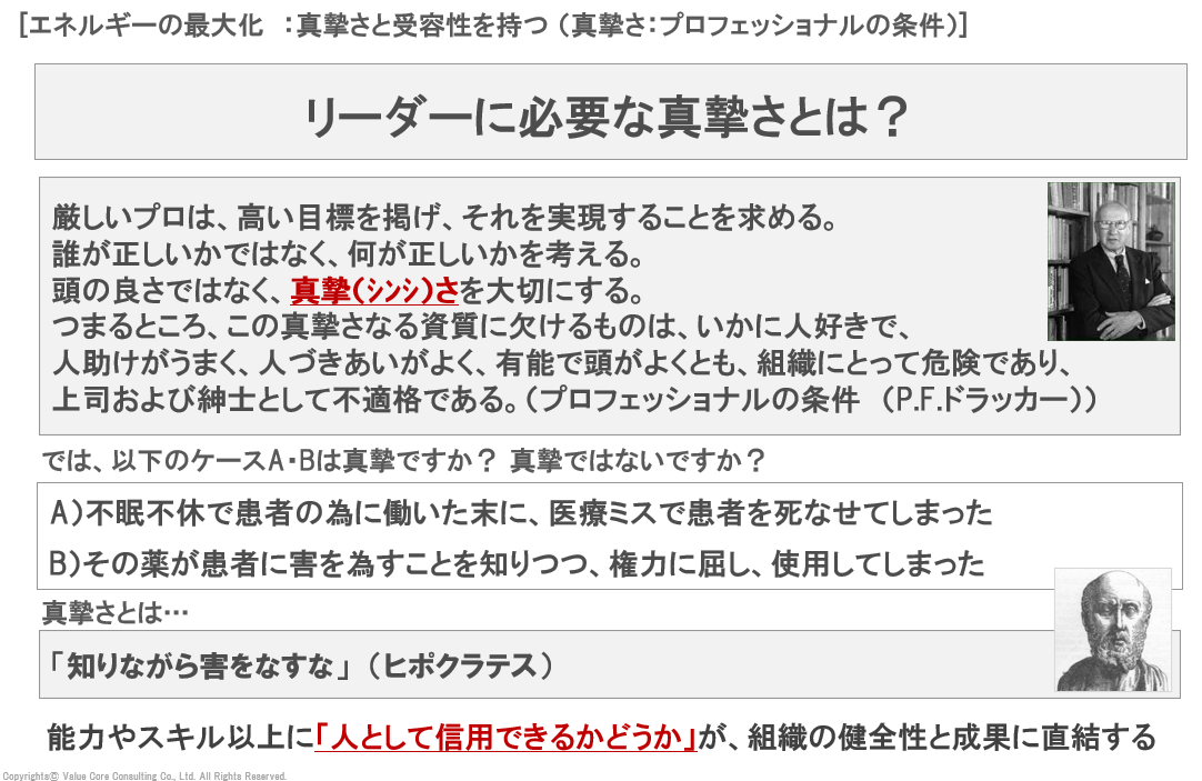 これこそが「真摯さ」の本質です。つまり、「知っていながら組織や他者に不利益を与える行動」は、いかに成果を上げているように見えても、“真摯ではない”と定義されます。