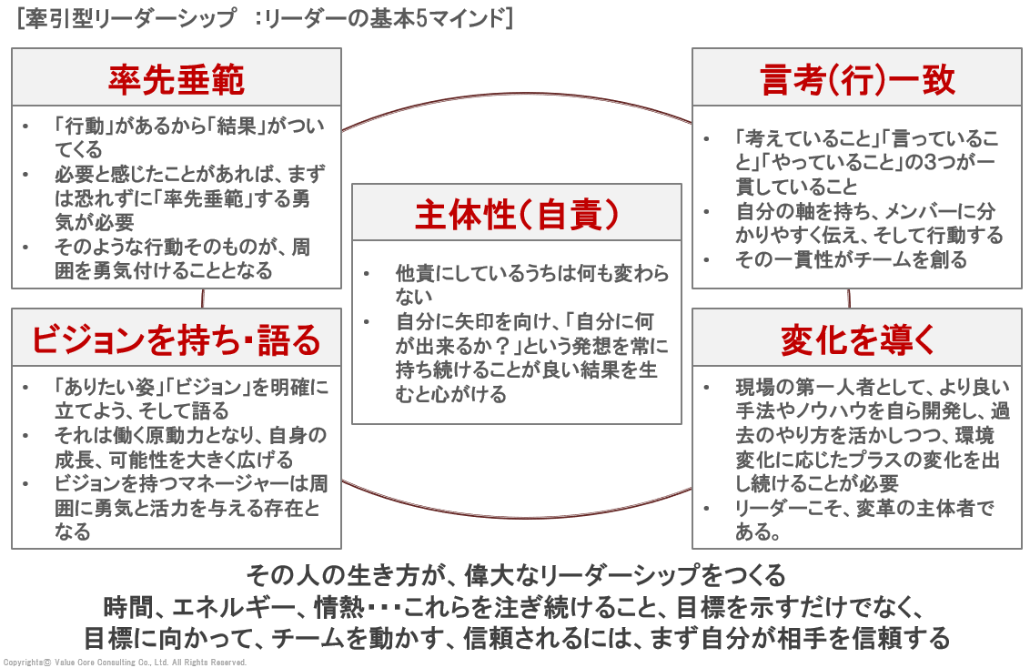 組織を引っ張る牽引型リーダーには、以下のような「マインド」が求められます。