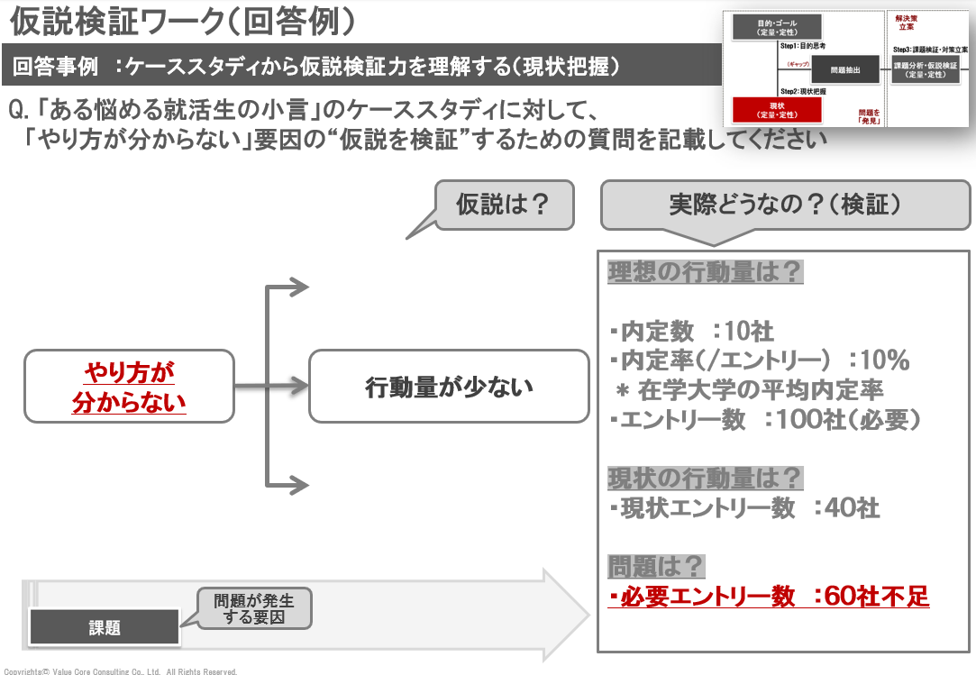 【回答例】<ケーススタディ:ある悩める就活生の声(仮説:「行動量」に対する検証)>
