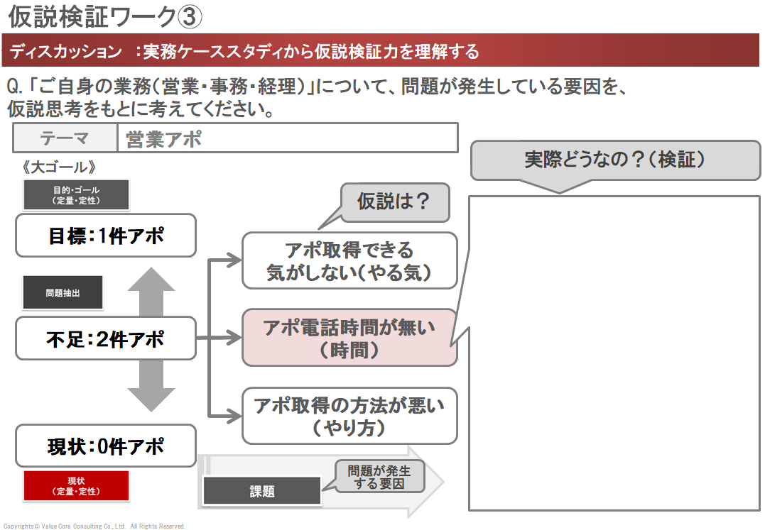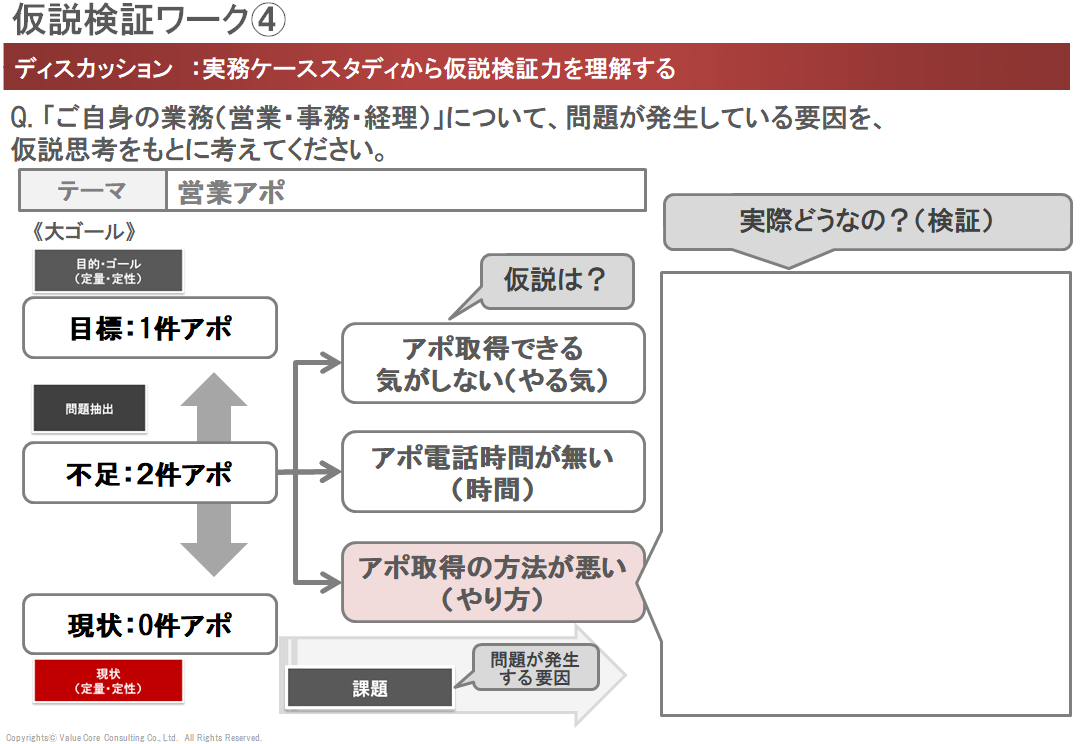 その背景には、問題解決の次のステップである「仮説検証」の欠如があります。