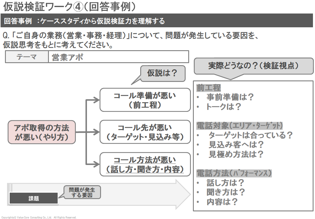 <営業アポ:ケースB(レベル2):アポ取得の方法が悪い(やり方)という課題への仮説検証>