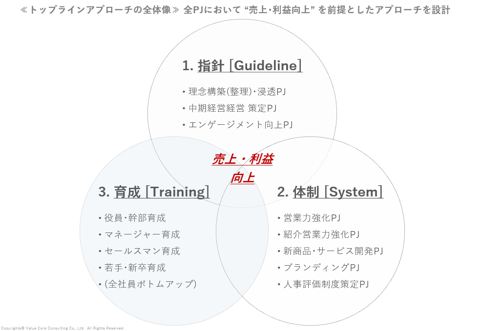 私たち株式会社バリュー・コア・コンサルティングは、これらの課題を解決し、再現性のある「売れる仕組み」を構築するご支援をいたします。