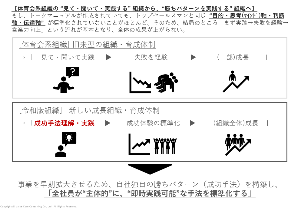 といった形で、成功ノウハウを言語化し、標準化に向けた研修プログラムとして体系化しました。
