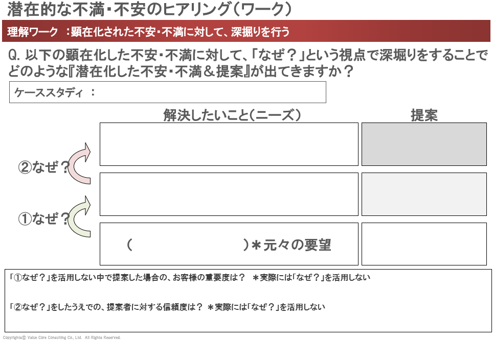 そのため、「なぜ?」を引き出すための、「第三者+事例」を活用し、潜在ニーズに気づいてもらう必要があります。