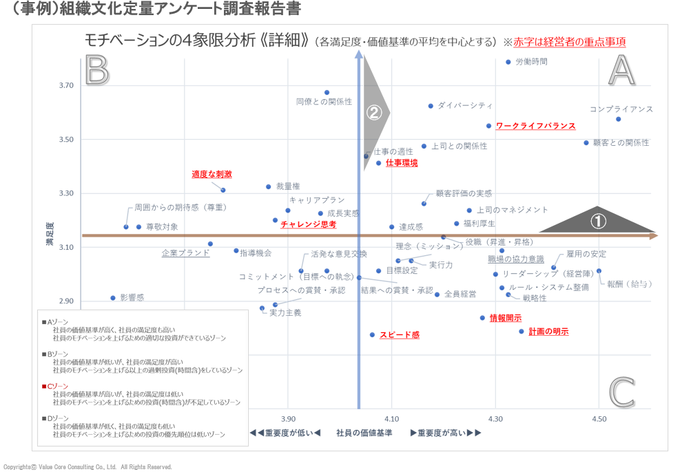 - 達成・称賛 : 仕事の達成感や、結果だけでなくプロセスも評価・承認されているか。