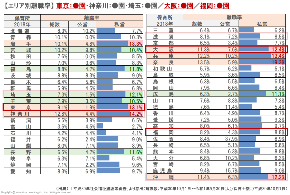 そのため、この平均よりも高い離職率の保育施設こそ、改善の余地が大きいと言えます。