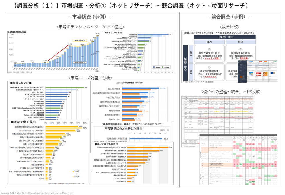 - 【調査方法】競合サイト分析、営業同行レポート、口コミレビュー調査、他社求人票の定点観測