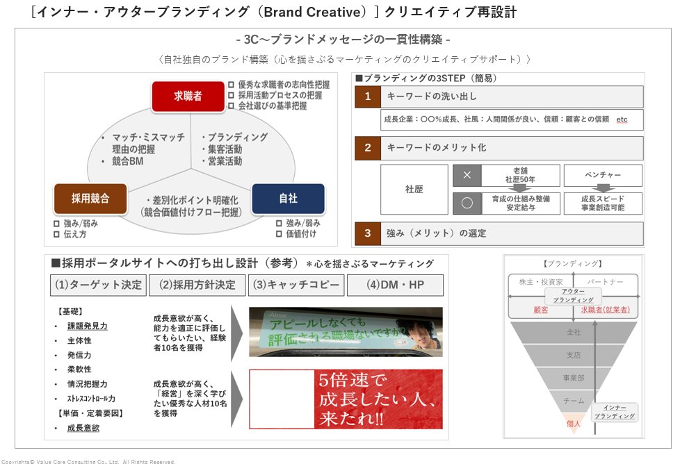 - メリット化 : 求職者にとっての「意味ある価値」に翻訳します