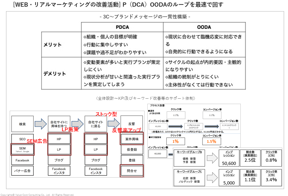 従来のPDCAは計画重視であるため、変化の早い人材市場では後手に回りやすい傾向があります。そこで、OODAループ(Observe, Orient, Decide, Act)を用いた高速改善が有効です。