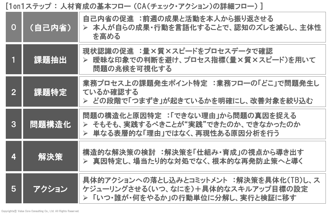- フィードバック:質問が「事実確認」止まりか「思考を引き出す問い」かを第三者が評価