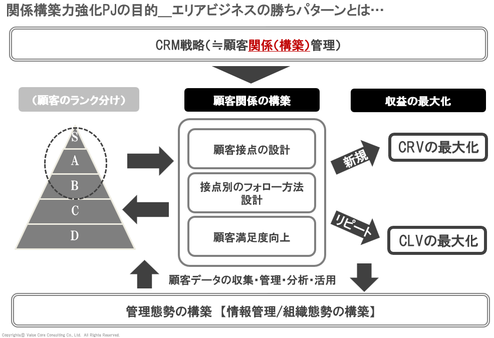 - ネットワークシェアの向上(新規顧客): 既存顧客からの紹介や口コミを増やし、新規顧客の獲得(CRV)に繋げます。