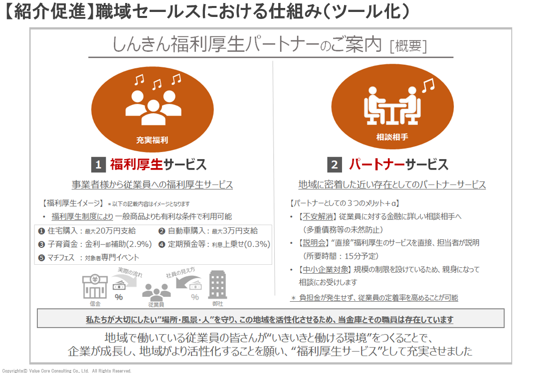 - 事業先の従業員 : 住宅ローンや教育ローン、資産形成のサポートなど、従業員の生活に関わる金融サービスを提案。