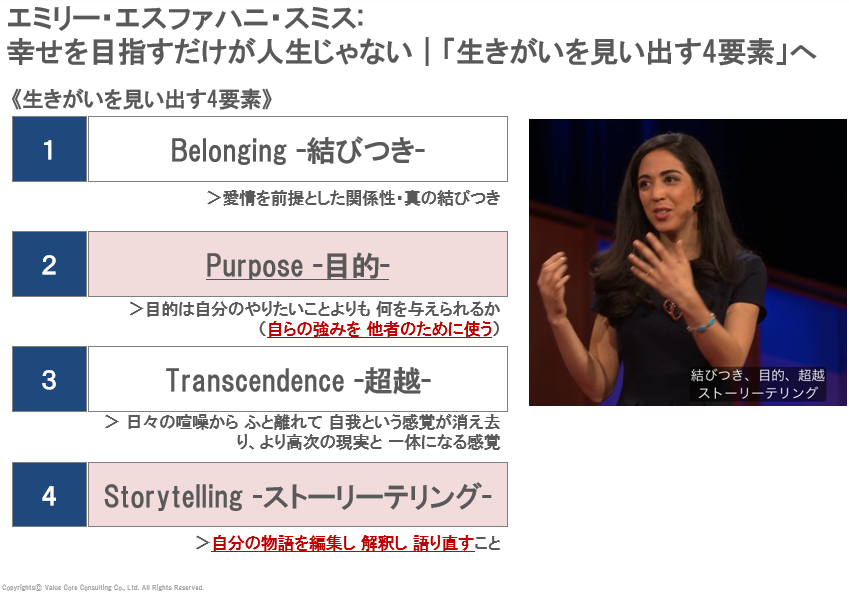 【参考動画】 幸せを目指すだけが人生じゃない|「生きがいを見い出す4要素」