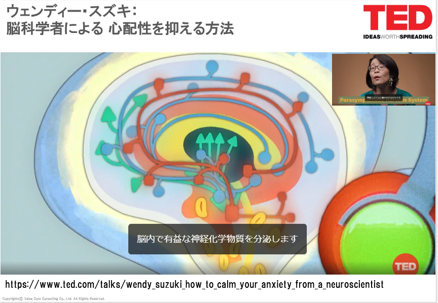 【参考動画】 ウェンディー・スズキ:脳科学者による 心配性を抑える方法