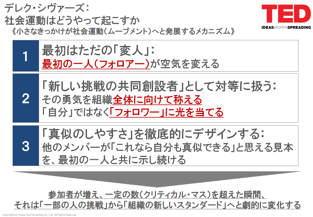 - 従来の「強いリーダー像」を覆す、「最初の賛同者(フォロワー)」を活かす手法