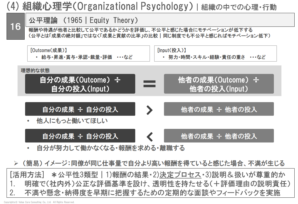 心理学者ジョン・アダムスが提唱した「公平理論(Equity Theory)」は、