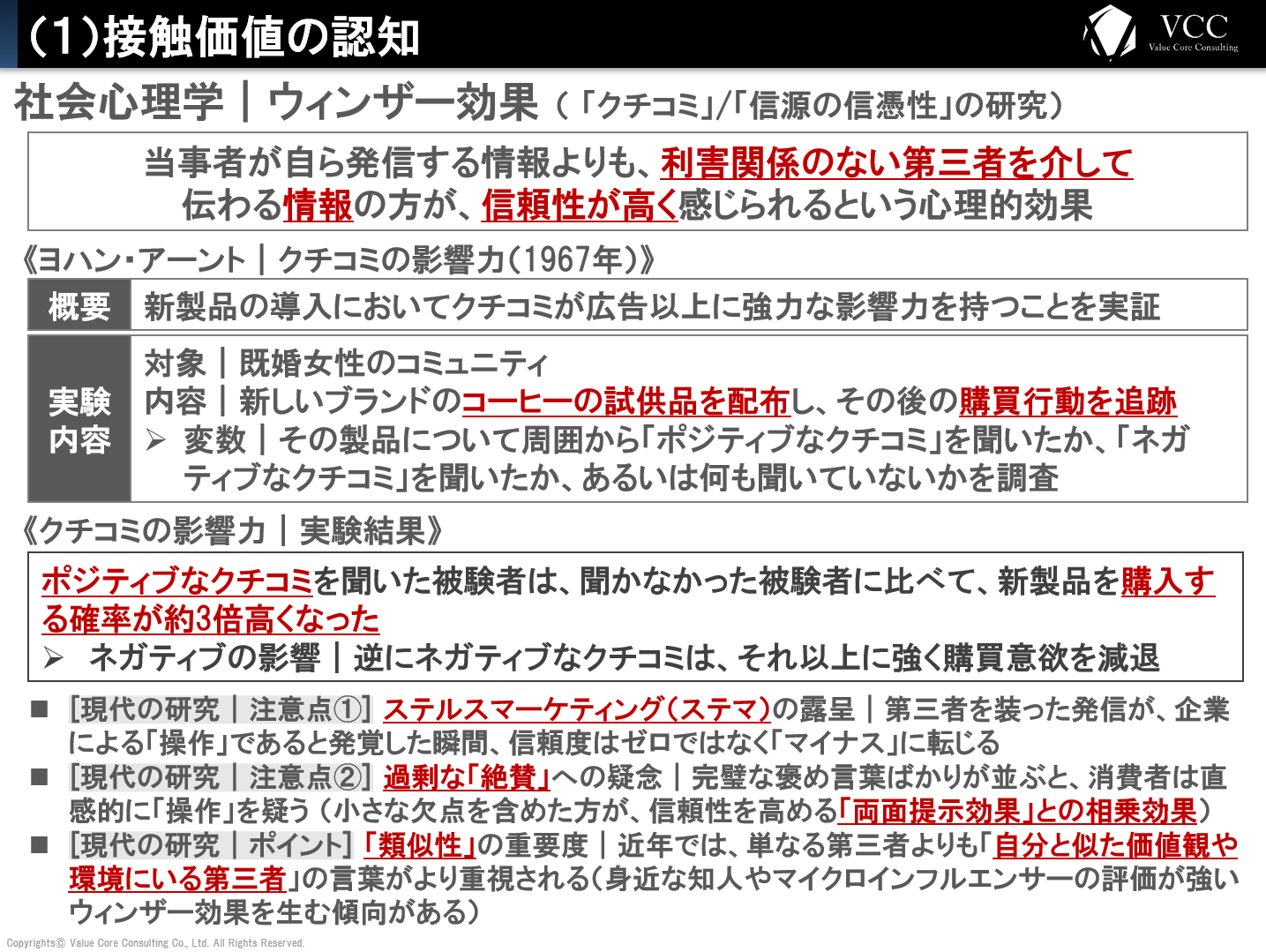 - ポジティブな影響:ポジティブなクチコミに接触した被験者は、非接触の被験者に比べて、新製品を購入する確率が約3倍高くなりました。