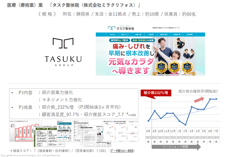さらに、その関係性を組織として再現できるよう、仕組みとノウハウを体系化して提供し、“狙って紹介が起きる”状態をつくることに主眼を置いた伴走支援を行いました。