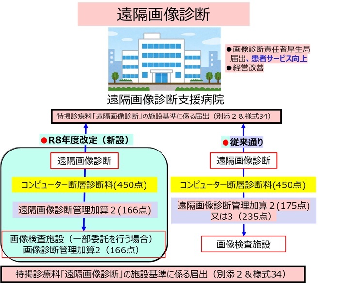 画像診断管理加算2(⼀部委託を行う場合)は、一定の施設基準を満たす保険医療機関が算定できる評価区分であり、放射線診断専門医の確保や読影体制の整備を前提としつつ、読影業務の「一部」を外部の医療機関等へ委託することを認めた制度です。従来は原則として自施設完結型の体制が求められていましたが、医師の地域偏在や働き方改革への対応を背景に見直しが行われました。これにより、自院での品質管理責任を維持したまま、専門性の高い遠隔読影を活用でき、診断精度の向上、常勤医の負担軽減、救急・夜間対応の強化が可能となります。委託にあたっては、契約内容の明確化、情報セキュリティの確保、最終的な診療責任の所在の整理などが重要であり、適切な運用体制の構築が算定継続の鍵となります。