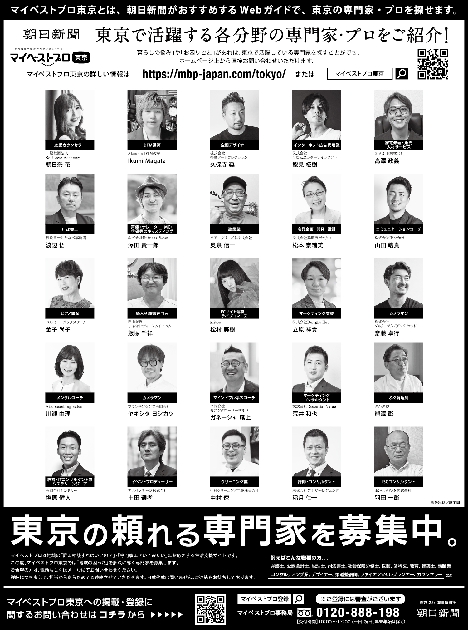 2026年1月24日(土)朝日新聞に「マイベストプロ東京」の顔写真付き新聞広告が掲載されました!