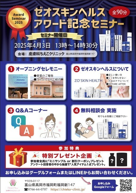 受賞を記念して、私たちが今まで行ってきたゼオスキンヘルスの正しい知識をより患者様に知っていただきたく、「ゼオスキンヘルス アワード記念セミナー」を開催いたします。
