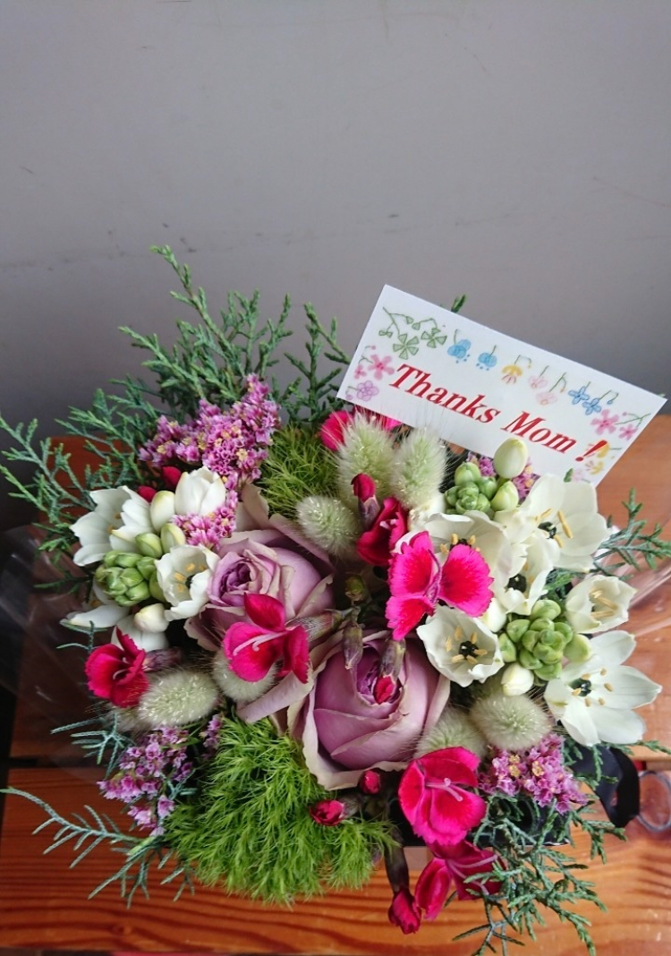 キュートなフューシャーピンクのナデシコを散りばめて。お母さんに感謝を込めて。