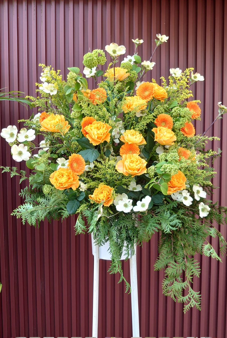 花水木とビタミンオレンジの花々を入れて。