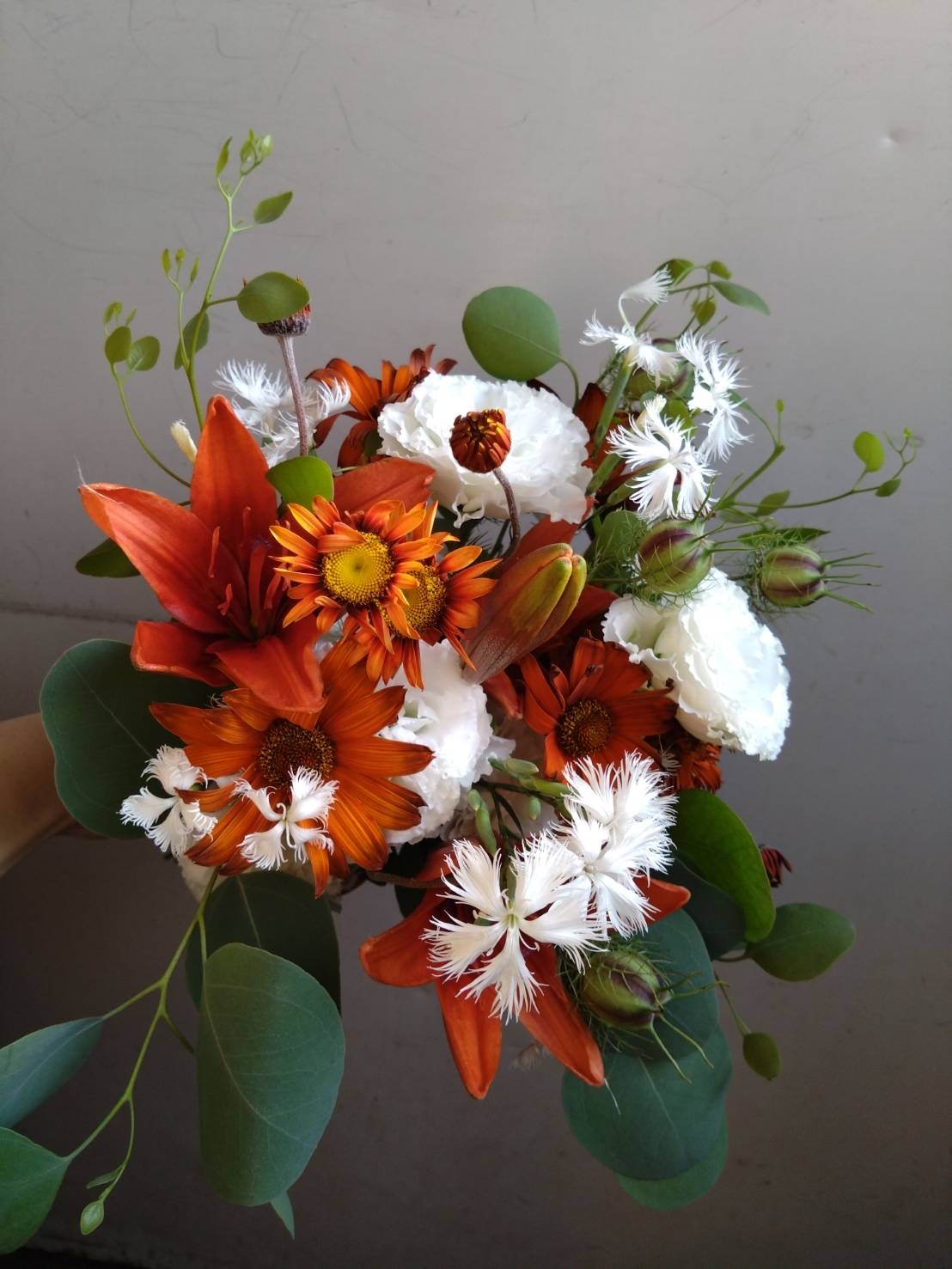 ご結婚写真の前撮りのためのブーケとブトニア。花嫁さんのこだわりの色合いに沿って、染めたり、探したり…出来上がったブーケブトニアは想像以上のものになりました(^^)