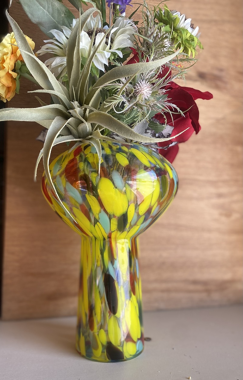 このビードロアンティーク調の花器は手にするだけで胸が躍ります。